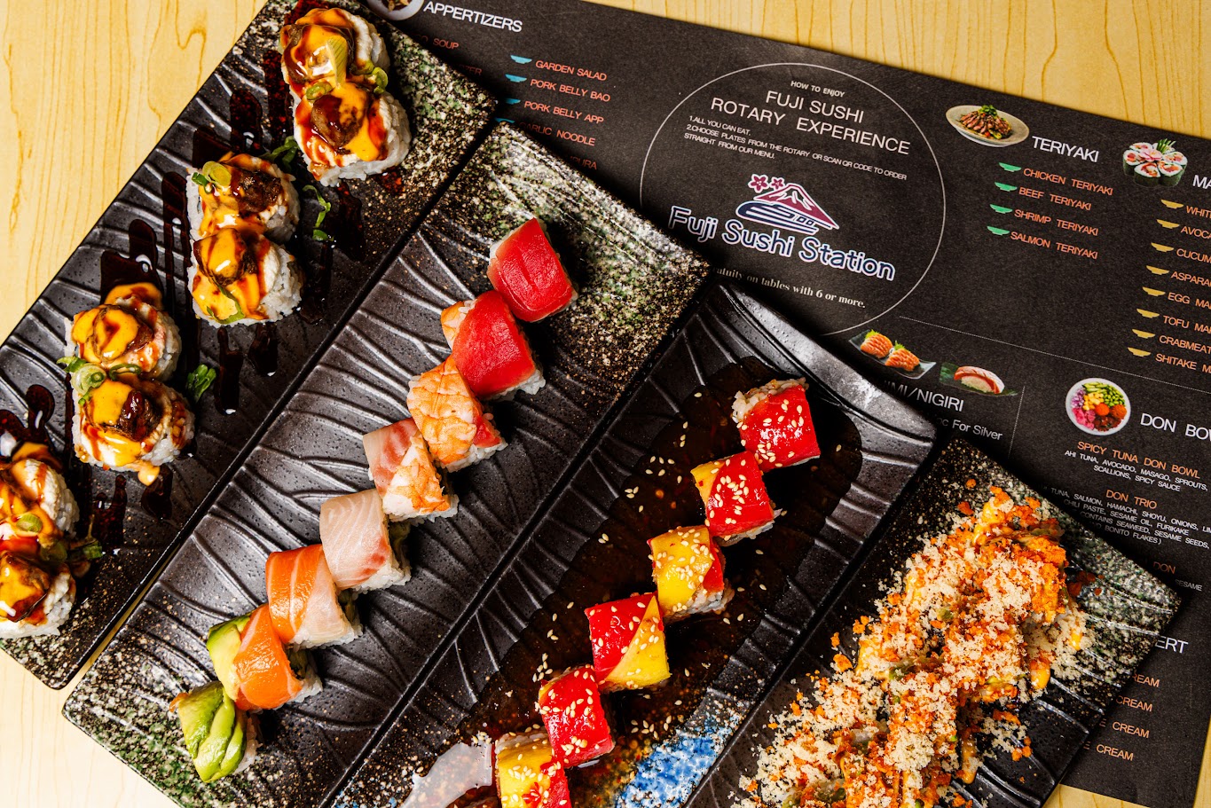 At Fuji Sushi Station, we are passionate about Japanese cuisine. Our journey began with a simple idea: to create a destination where our guests could savor an endless variety of sushi and sashimi while enjoying the unique experience of our rotating conveyor belt. From our inception, we've strived to offer the best in both quality and affordability, making exceptional dishes accessible to all.